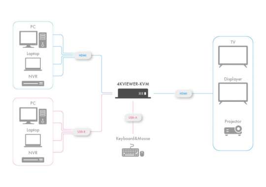aegis 4KVIEWER-KVM-4 leads a revolutionary new direction for KVM switchers by integrating 4-port HDMI® functionality and offering various display modes, including Quad View Mode, Picture-in-Picture Mode (dual, triple, or quad screens), Dual Screen Mode (dual, triple, or quad screens), Picture-on-Picture Mode, and Full-Screen Mode. Control and switching between computers/video sources can be flexibly performed using front panel buttons, an infrared remote control, On-Screen Display (OSD), or hotkey combinations from the console’s keyboard and mouse.