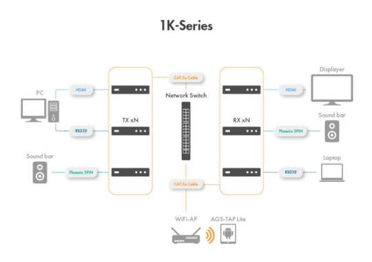 ◎ Integrates video/audio/RS232 control signals transmission over IP networks.