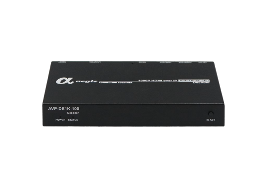 The aegis AVP-DE1K-100 is a 1080P over IP decoder series that utilizes dual H.264/H.265 decoding technology to support 1080P 60Hz high-definition video processing. It provides an HDMI® 1.3 output interface and automatic EDID detection, enabling the transmission of audio, video, and control signals over a 1G network. It supports the LPCM stereo audio format and offers analog audio output. The system supports PoE power supply and 8×8 video wall configurations, and offers comprehensive management tools.