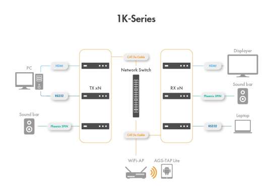 ◎ Integrates reception of video/audio/RS232 control signals over IP networks.