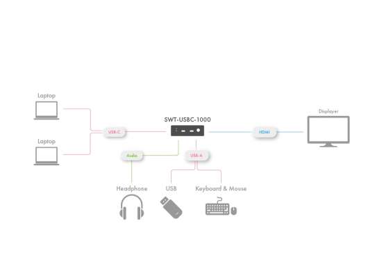 Aegis SWT-USBC-1000 KVM Switch integrates dual USB Type-C to HDMI® functionality, allowing users to control two source devices using a single set of keyboard, mouse, and monitor. It supports up to 4K 30Hz resolution output and is fully compatible with Samsung DeX mode, enabling mobile devices to deliver a seamless big-screen workflow experience. Designed with a bus-powered architecture through the Type-C interface, it eliminates the need for an external power supply. Combined with plug-and-play functionality, it offers exceptional portability and ease of use. The device includes a built-in USB 3.2 Gen 2 hub, supporting 10Gbps high-speed data transfer and backward compatibility with USB 3.1 Gen 1, USB 2.0, and USB 1.1 standards. This enables efficient sharing of USB peripherals between two Type-C devices, providing a highly effective resource management solution.